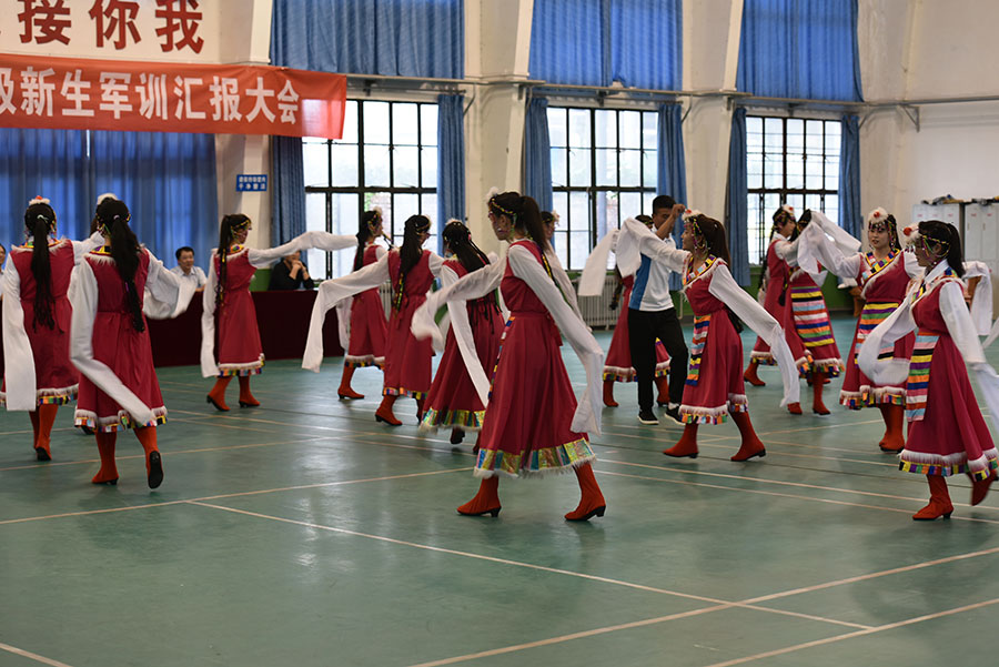 本次汇报表演内容丰富、形式多样,既有传统的军事技能展示,有宏伟嘹亮的军歌,有威武雄壮的军体拳、擒敌拳,也有时代特色鲜明的青春韵律健美操、民族特色鲜明的藏族舞和学生晨读展示,充分展示了学院文化建设成果。