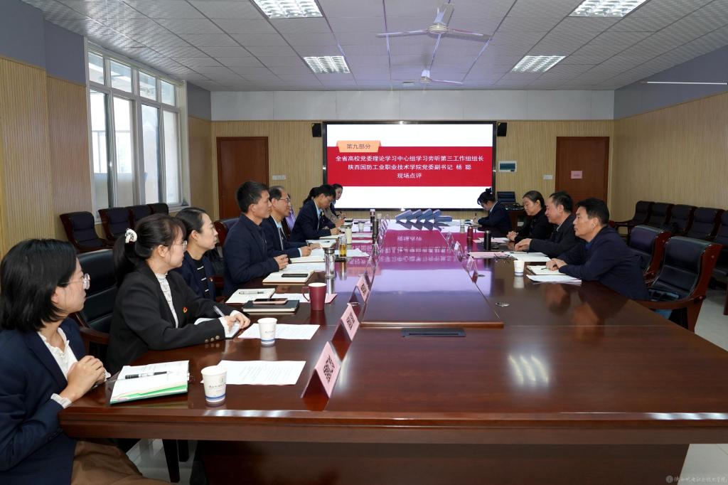 10月15日下午,陕西省高校党委理论学习中心组学习旁听第三工作组组长、陕西国防工业职业技术学院党委副书记杨聪带队旁听贝博党委理论学习中心组10月集体学习会并作现场点评,工作组成员陕西国防工业职业技术学院党委宣传部部长张鑫、陕西能源职业技术学院党委宣传部部长巩青春列席旁听指导。学校党委书记伊逊智主持学习会并讲话。党委理论学习中心组成员参加学习会。