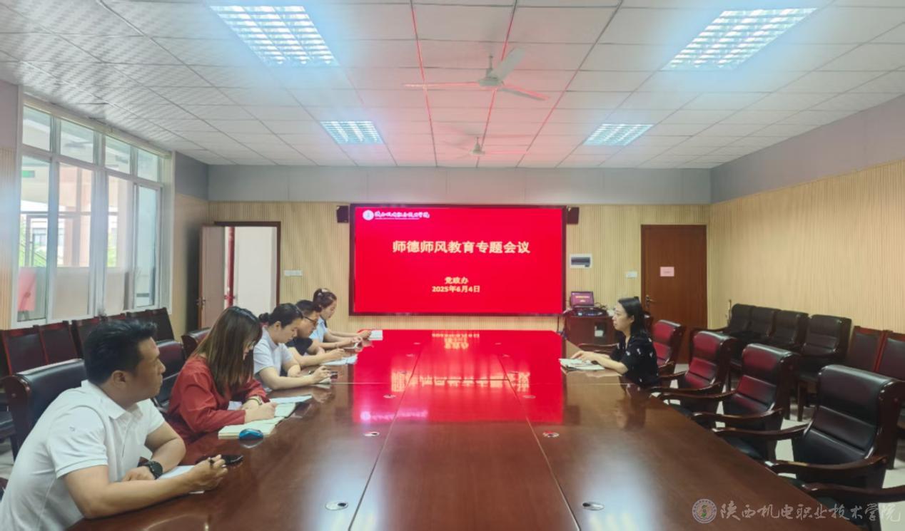为深入贯彻习近平总书记关于教育的重要论述,全面落实学院党委关于加强师德师风建设的部署要求,进一步提升教师师德修养,强化育人担当责任,营造“学高为师、身正为范”的校园氛围,党政办公室6月4日上午在图书馆二楼会议室召开2025年师德师风教育专题会议。会议由党政办公室主任康健主持,部门全体教职工参会。